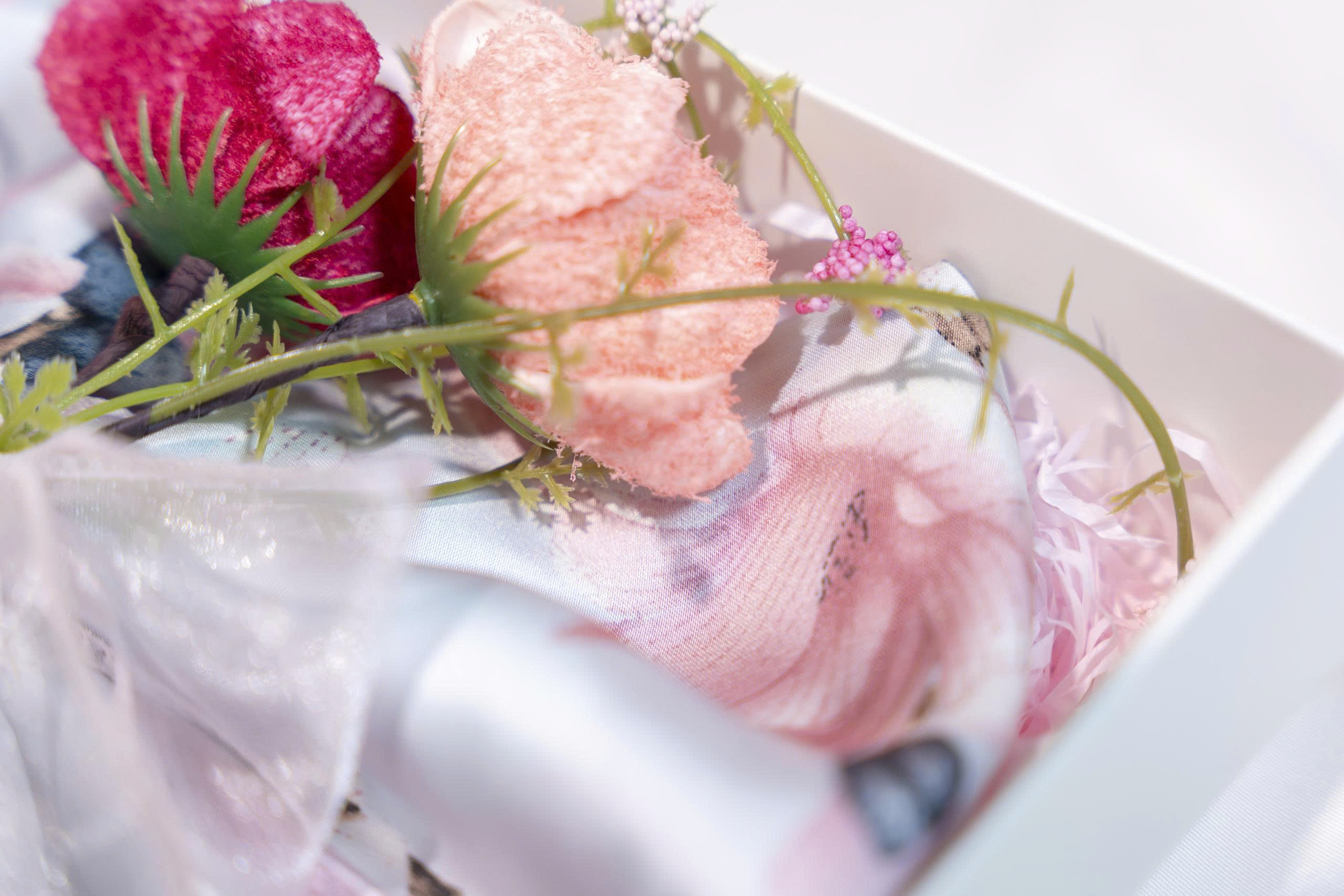 Đặc biệt, khăn được gấp khéo léo thành hình nơ hoặc tạo dáng như cánh bướm e ấp bên bông hoa, mang đến hiệu ứng thị giác mềm mại và đầy cảm xúc.