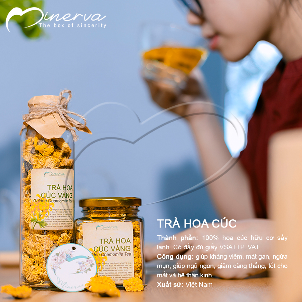 1. Trà hoa cúc: Với công nghệ sấy lạnh giữ nguyên các chất dinh dưỡng trong hoa. Trà hoa cúc có hương thơm thanh dịu, dễ uống. Trong trà có chất hoạt chất Flavones – chất chống oxy hóa làm giảm huyết áp, giảm hình thành Cholesterol. Qua đó giảm nguy cơ về tim mạch, mỡ máu, cải thiện làn da, làm chậm quá trình lão hóa của cơ thể. Ngoài ra trà hoa cúc còn giúp an thần, ngủ ngon, giúp giảm căng thẳng, lo lắng.