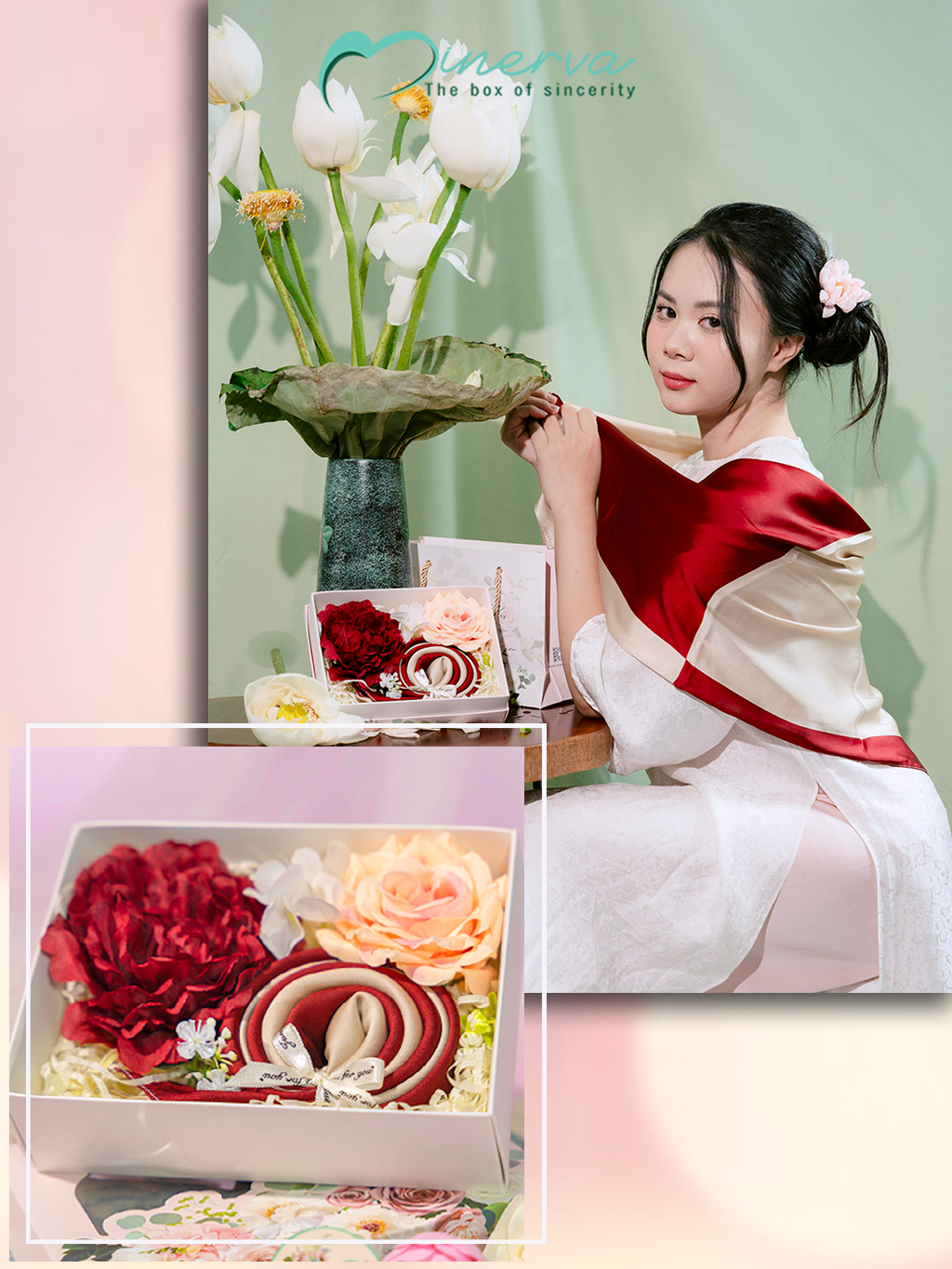 Minerva hiểu rằng, mỗi người nhận đều xứng đáng với món quà được chọn lựa và chăm chút đến từng chi tiết. Từ việc chọn họa tiết khăn cho hợp gu người nhận, cho đến cách phối màu hoa lụa, thắt nơ, đặt tag... tất cả đều được đội ngũ Minerva chuẩn bị bằng cả tâm huyết.