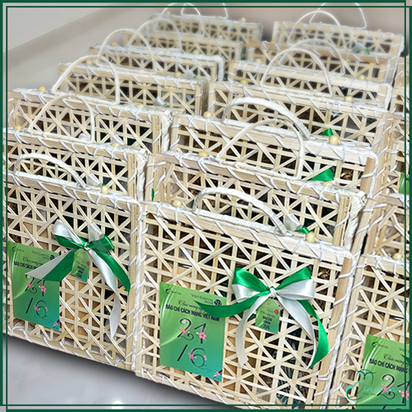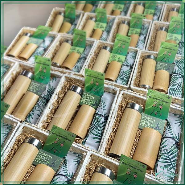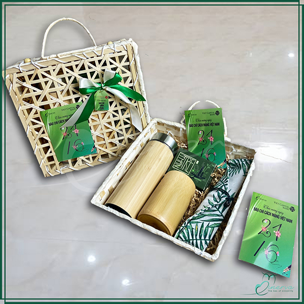 Hộp quà được lựa chọn có hình bóng của cây Tre Việt Nam, gần gũi, thân thiện môi trường. Món quà không những giản dị, mà lại rất hữu dụng, cũng không kém phần thời thượng.