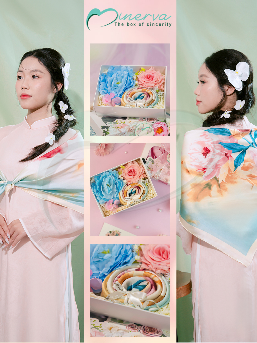 Khăn lụa Vivian: Sang trọng, tinh tế, tôn vinh vẻ đẹp mềm mại của phái nữ.