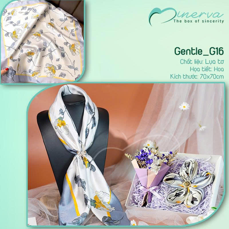 Set quà Gentle không chỉ là sự kết hợp đơn thuần giữa một chiếc khăn lụa, một bó hoa khô hay những lớp giấy rối trang trí… mà đó là tổng hòa của sự tinh tế, dịu dàng và đầy trân trọng. Từng sợi tơ mềm mịn, từng cánh hoa khô nhỏ xinh, từng lớp giấy gói đều được chọn lựa và sắp xếp cẩn thận như chính tấm lòng bạn gửi gắm.