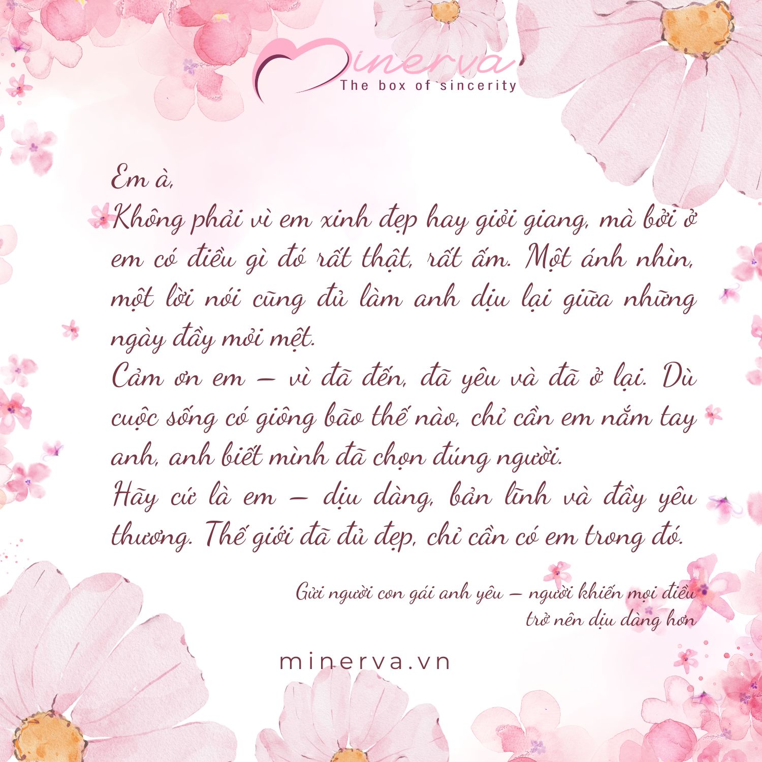 Người vợ chính là hậu phương vững chắc, đồng hành cùng chồng trên mọi chặng đường. Một lời chúc ngọt ngào sẽ khiến vợ hạnh phúc hơn bao giờ hết: