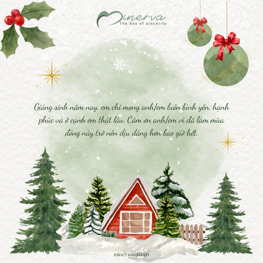 Bạn có thể chọn những lời chúc mang ý nghĩa bình yên: mong người mình yêu luôn khỏe mạnh, an yên và được bao bọc bởi yêu thương. Hoặc những lời chúc hướng đến tương lai, cùng nhau đi qua thêm nhiều mùa Giáng sinh nữa, cùng xây dựng những kỷ niệm giản dị nhưng bền lâu.