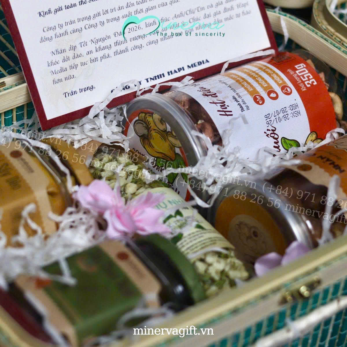 Sự tin tưởng của Hapi Media trong dịp Tết Bính Ngọ 2026 là niềm vinh dự lớn đối với Minerva. Chúng tôi tin rằng mỗi set quà “Lộc An” được trao đi không chỉ mang theo hương vị ngày xuân, mà còn lan tỏa sự trân trọng và tinh thần gắn kết bền vững trong nội bộ doanh nghiệp.