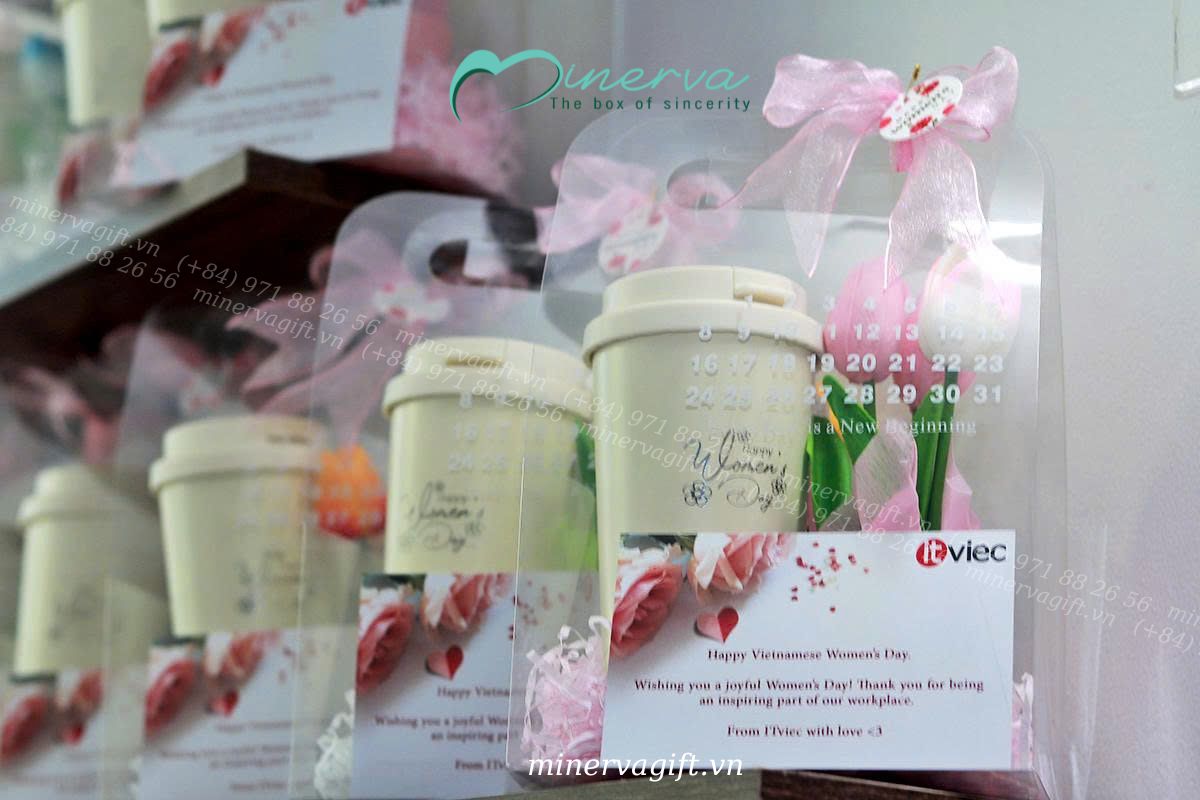 Set quà SENY là sự kết hợp hài hòa giữa công năng và cảm xúc. Bình giữ nhiệt inox 316 cao cấp, an toàn cho sức khỏe, phù hợp sử dụng hằng ngày nơi công sở hay khi di chuyển, được in logo ITviec tinh tế, vừa nhận diện thương hiệu vừa giữ được vẻ trang nhã. Đi kèm là lọ hoa tulip để bàn nhỏ xinh – biểu tượng của sự dịu dàng, tươi mới và nguồn năng lượng tích cực, giúp góc làm việc trở nên mềm mại và truyền cảm hứng hơn mỗi ngày. Toàn bộ set quà được đóng gói trong túi Mica trong suốt, phối nơ hồng nhẹ nhàng, kèm thiệp thiết kế riêng chúc 20/10 từ ITviec, tạo nên tổng thể tinh tế, nữ tính nhưng vẫn hiện đại.