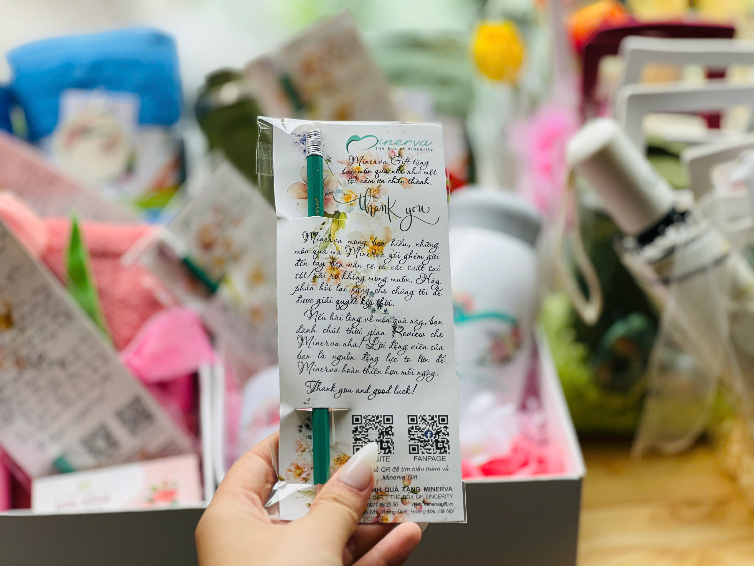 Chúng mình hiểu rằng, đằng sau mỗi hộp quà là một câu chuyện, một dịp đặc biệt, một lời nhắn gửi yêu thương. Chính vì vậy, Minerva luôn chăm chút từng chi tiết, từ cách chọn nguyên liệu, thiết kế, đóng gói cho đến những món quà nhỏ đi kèm – để từng trải nghiệm bạn nhận được đều ấm áp, trọn vẹn và đáng nhớ.