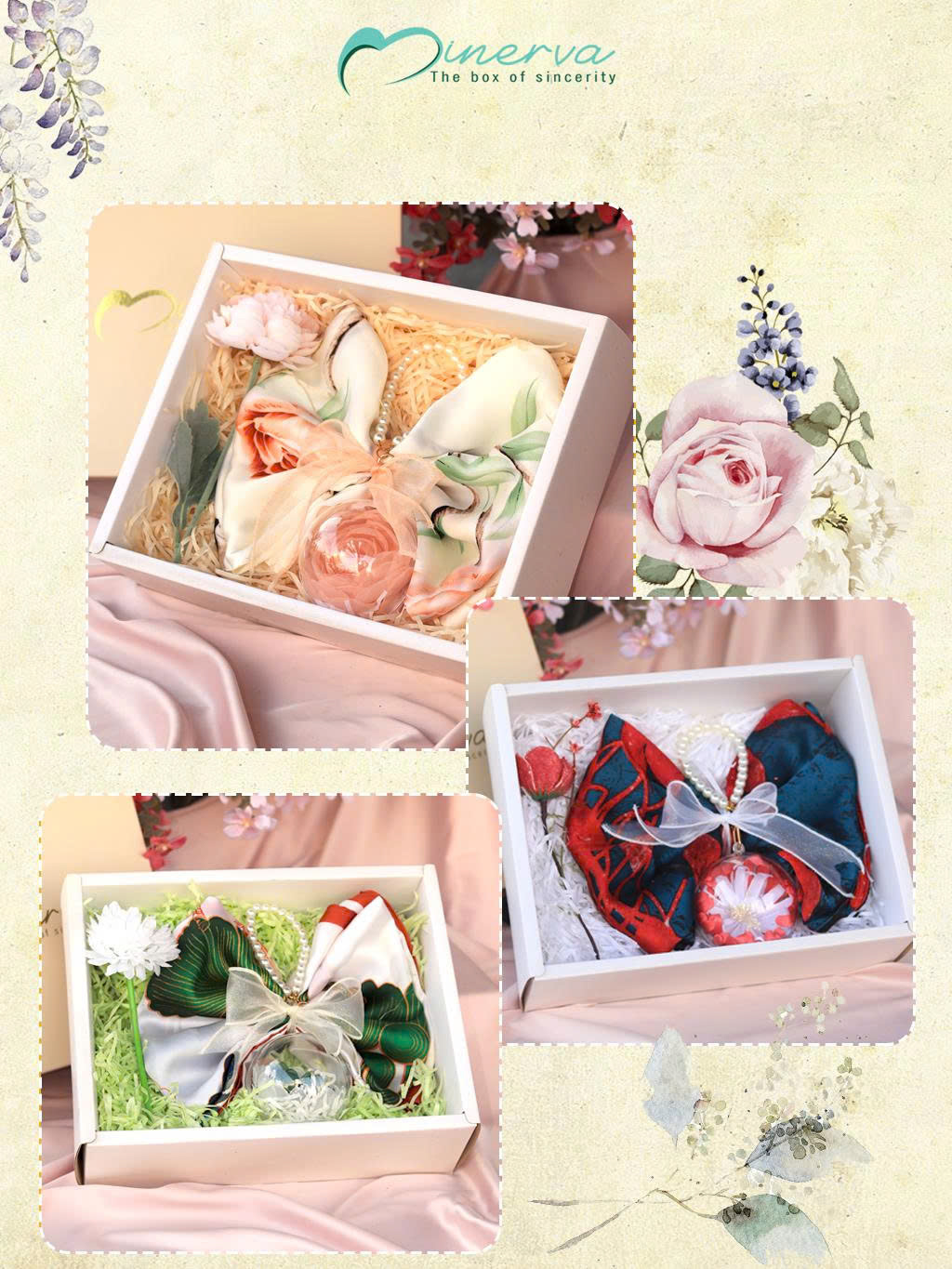 ✅ Khăn lụa, khăn tay cao cấp: Gợi cảm giác trang trọng, sâu sắc.
