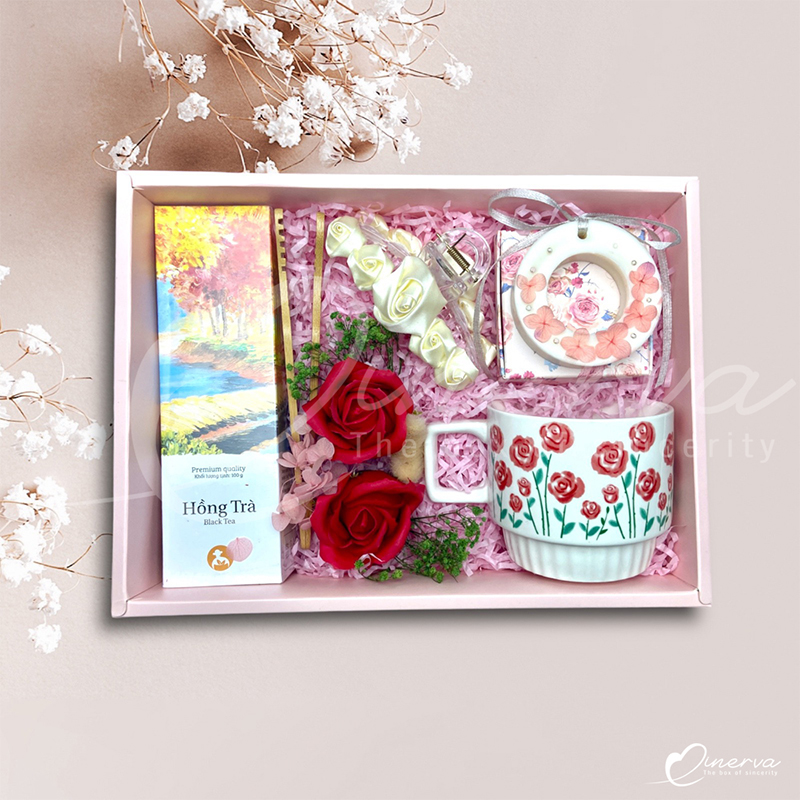 Rose Giftbox là sự kết hợp của các sản phẩm mang chủ đề hoa hồng, nổi bất với tone hồng và đỏ. Set quà tặng dịu dàng dễ thương dành tặng bạn gái thay cho tấm chân tình cần thổ lộ.