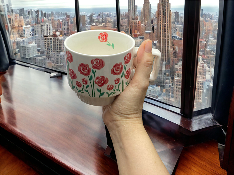 Cốc hoa hồng có họa tiết độc đáo, như một vườn hồng đang tỏa ngát trong tay bạn. Thiết kế phong cách Châu Âu.