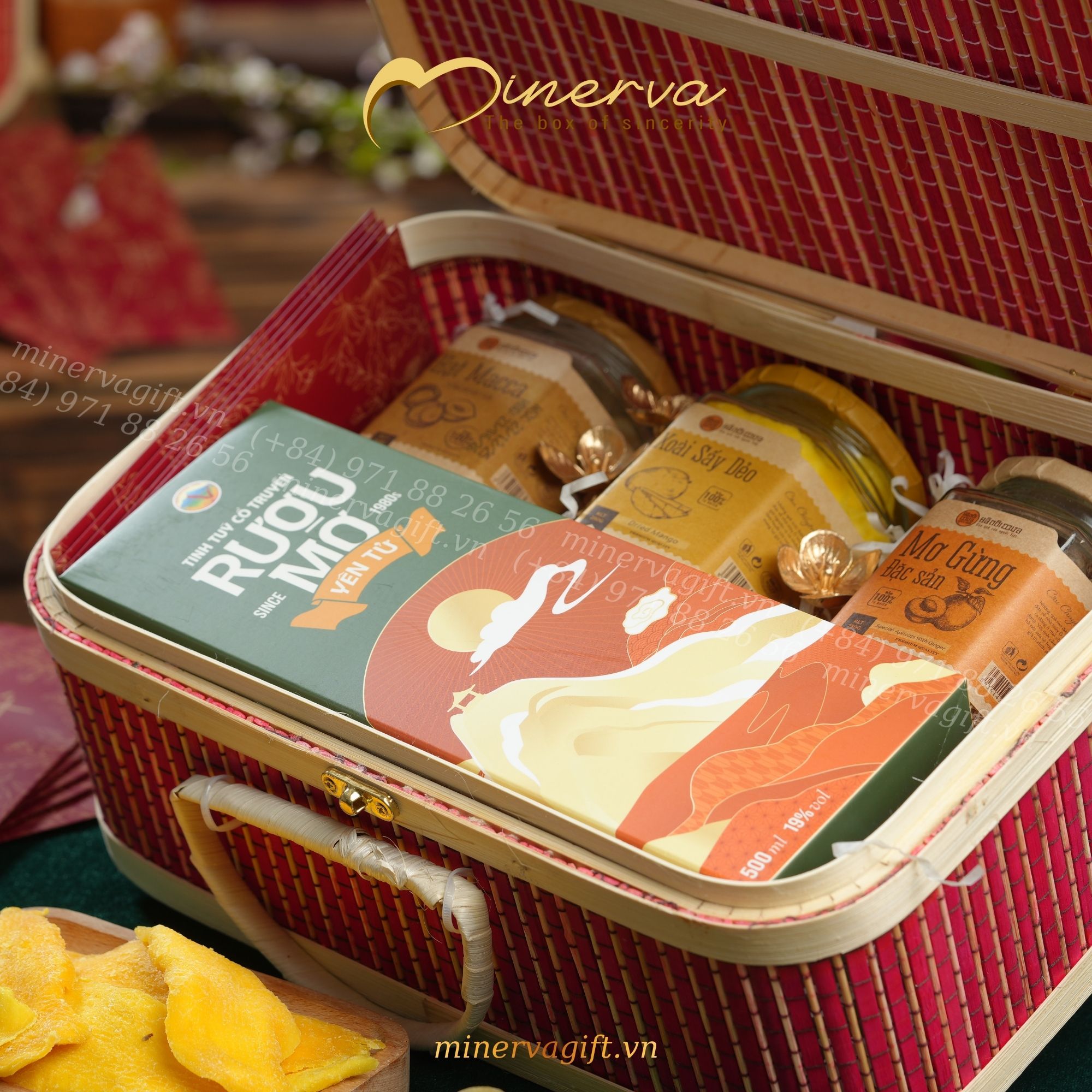 6. Set quà Tết Minerva – Gia An và Phúc An với điểm nhấn rượu mơ Yên Tử