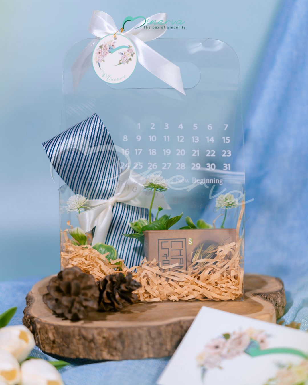 Hộp quà mica trong suốt in lịch tháng – Tượng trưng cho sự khởi đầu