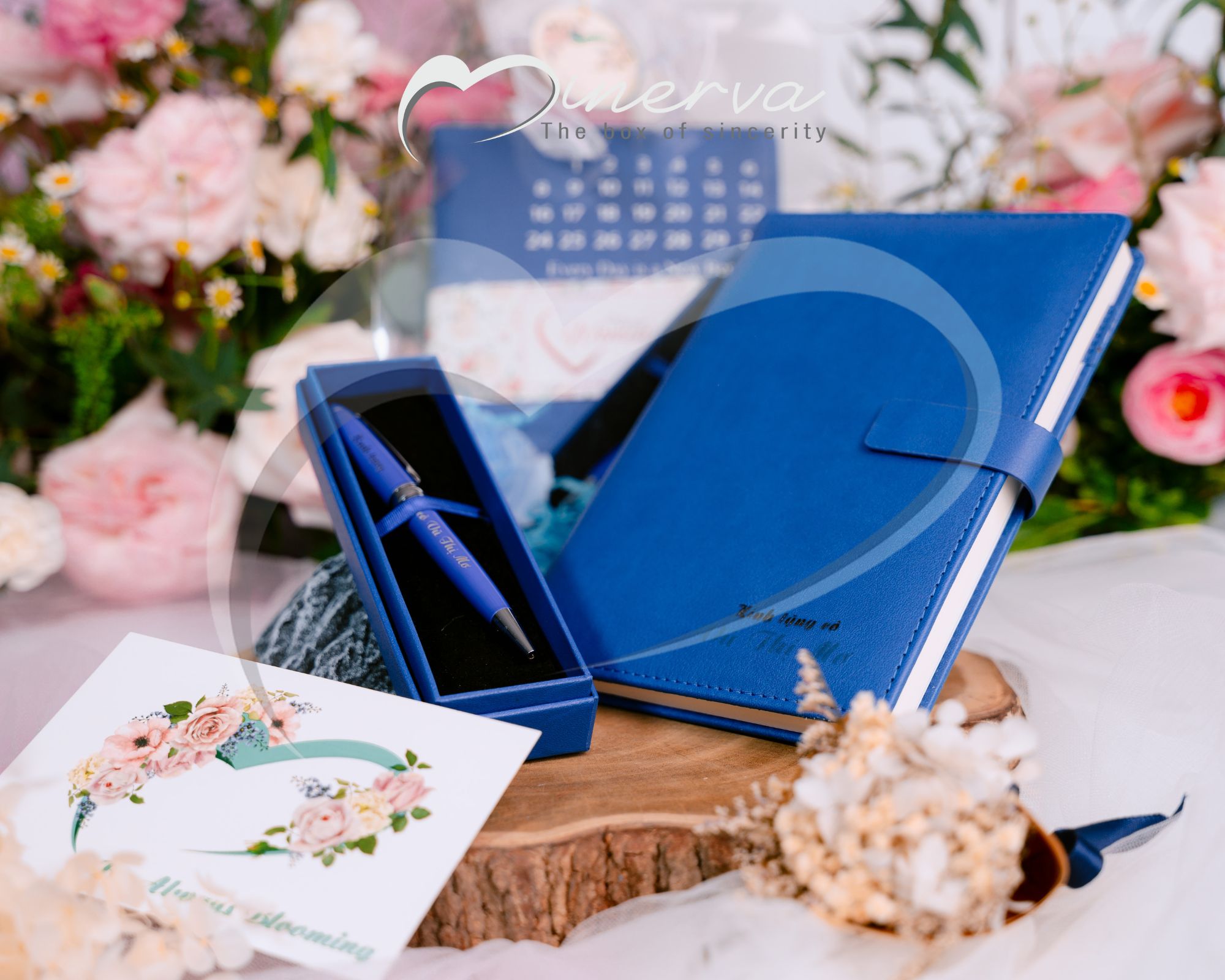 Tại Minerva, bạn không chỉ tìm thấy những mẫu sổ tay và bút ký đa dạng về kiểu dáng, chất liệu, mà còn được hỗ trợ dịch vụ khắc, in logo, cá nhân hóa theo yêu cầu. Từ những chi tiết nhỏ như thiết kế bìa sổ, màu mực, chất liệu bút… đều có thể điều chỉnh để phù hợp với tinh thần thương hiệu. Điều này giúp mỗi món quà trở nên riêng biệt, mang dấu ấn cá nhân nhưng vẫn tinh tế và sang trọng.