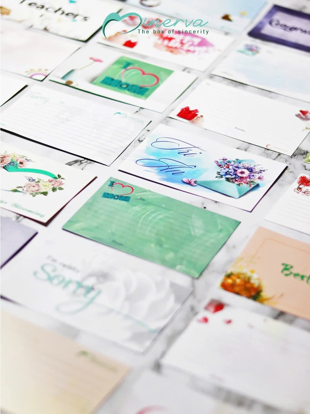 Minerva tạo ra những mẫu thiệp không đại trà – mỗi thiết kế đều mang tinh thần riêng, để phù hợp với cá tính và mục đích người tặng.