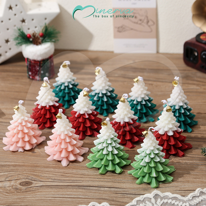 Cây thông nến 3D với gam màu đỏ – xanh – trắng được đổ thủ công tinh xảo.