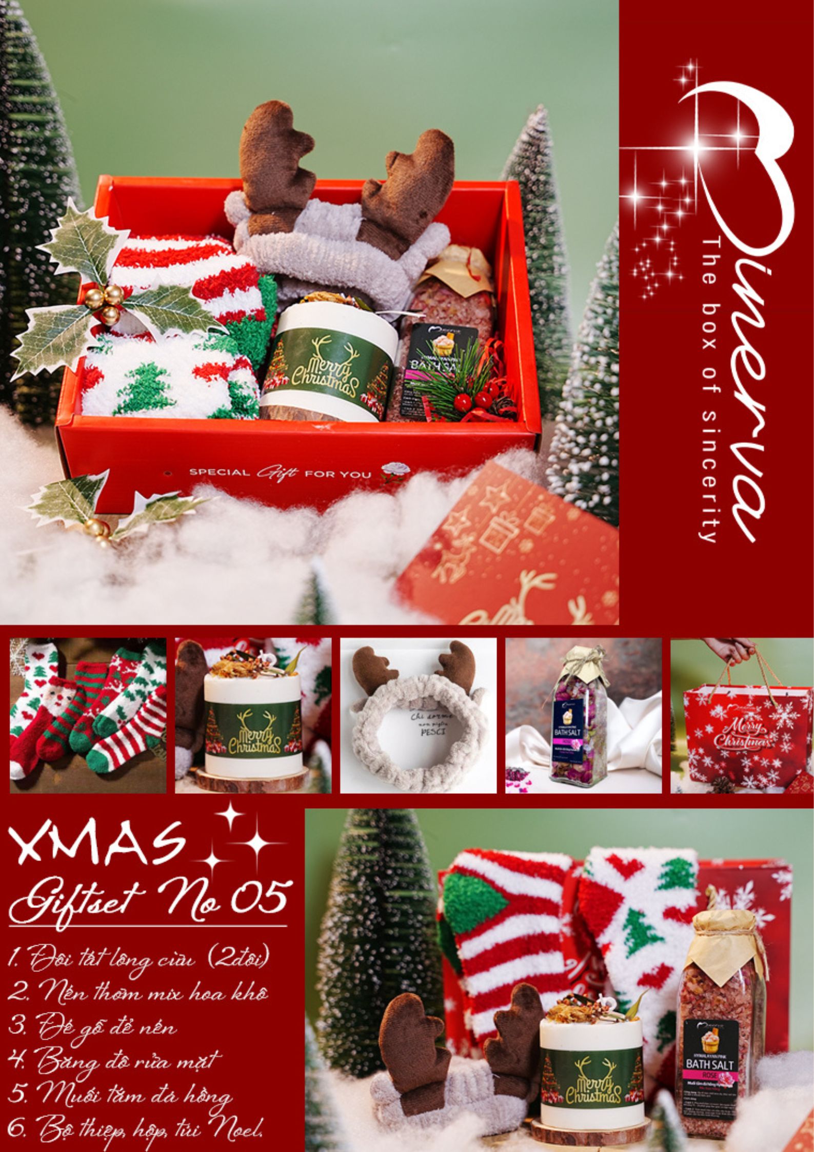 Không chỉ là một set quà Noel, XMAS Giftset No.05 của Minerva được thiết kế như một lời nhắn nhủ dịu dàng: hãy chậm lại, chăm sóc bản thân và tận hưởng trọn vẹn những ngày cuối năm an yên. Set quà mang tinh thần ấm áp – thư giãn – chữa lành, phù hợp để dành tặng những người bạn yêu thương sau một năm bận rộn.